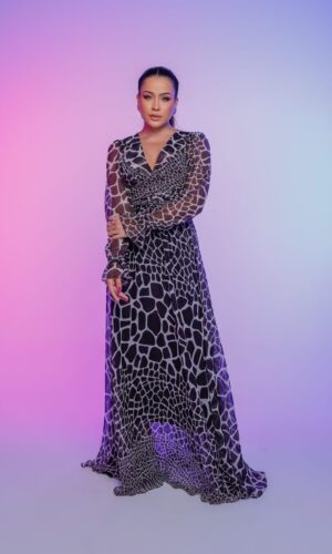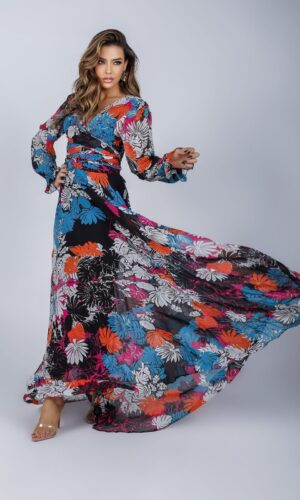 Vestido confeccionado em crepe gorgete. Elegante, ideal para usar em ocasiões especiais. A peça possui mangas 3/4 bufantes ,e forro midi embutido.