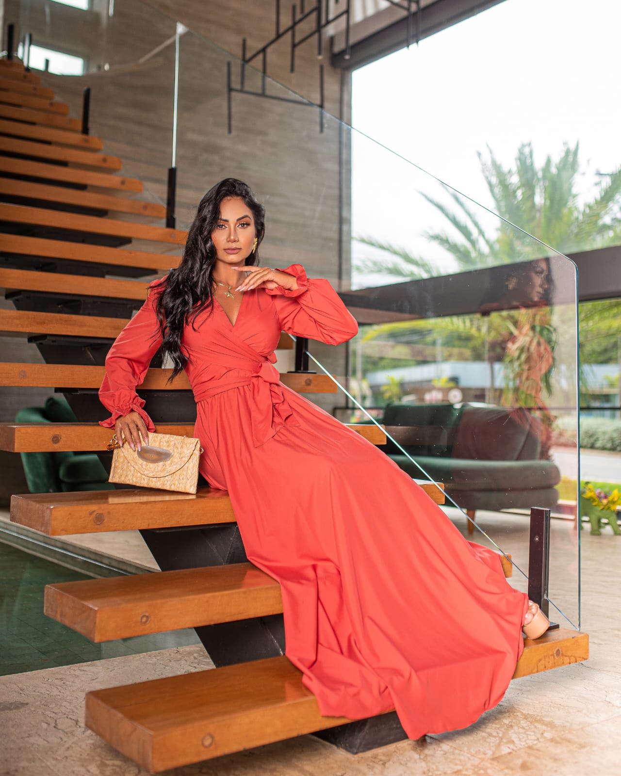 Vestido no tecido Musseline, 100% poliester,detalhes de elastico nos punhos e elastico na cintura para adaptar da melhor maneira ao corpo,detalhes do transpasse que pode ser ajustado na cintura amarrando e modelando. veste do 36 ao 44.
